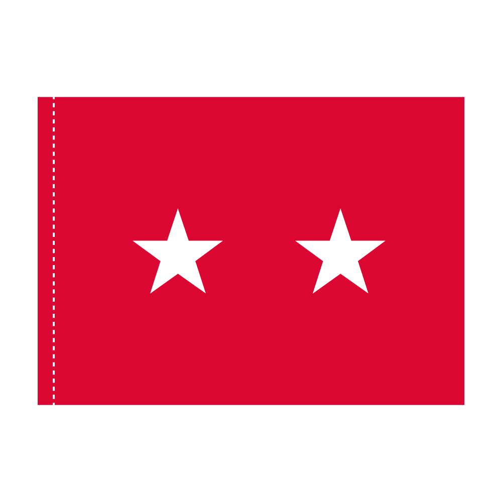 The Army 2 Star General Officer Flag, commonly known as the Major General flag, follows the U.S. Army’s tradition of using a red field with white stars to denote general officer rank—two stars for Major General. This design dates back to the early 20th century and is used in official ceremonies, headquarters displays, and processions to signify the presence and authority of a two-star general. The flag represents the high-level leadership, strategic responsibility, and service of senior Army officers.