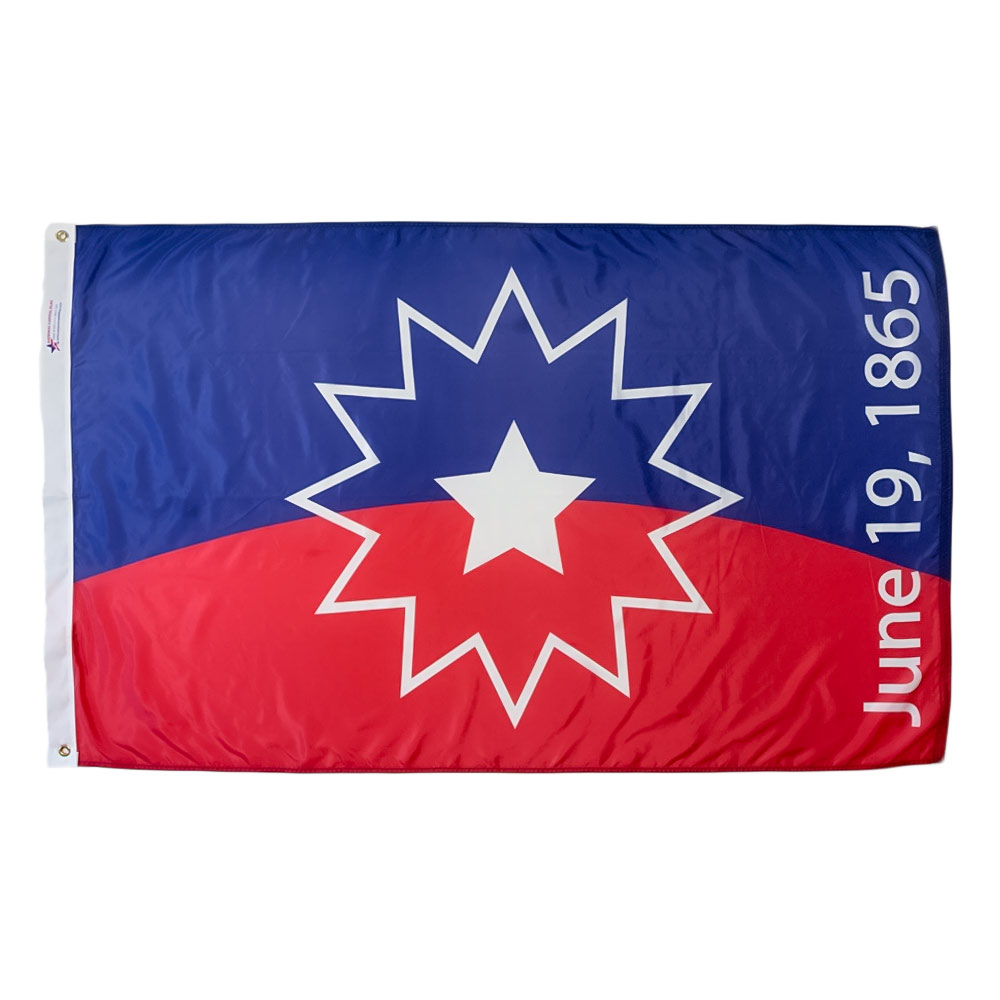 Celebrate freedom with the Juneteenth flag with grommets, crafted for long-lasting outdoor display. Made from UV-resistant 200 denier nylon, this historic flag features red, white, and blue with a bursting star, crafted to resist fading in American climates. Designed for compact, high-impact presentation, the flag delivers full-color liberation in a perfectly proportioned format ideal for flagpoles, emancipation events, or community celebrations.