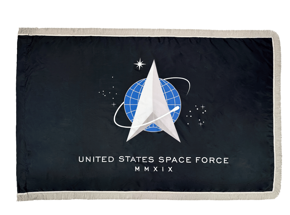 Display the United States Space Force Flag Fringe to honor the United States Space Force, crafted for elegant ceremonial display. Made from UV-resistant 200 denier nylon, this flag features the official Space Force emblem on a black field with the words “United States Space Force,” resisting fading in various climates.