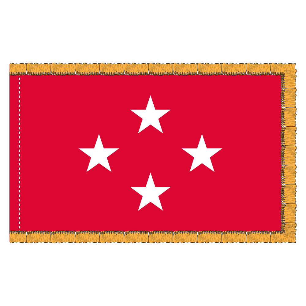 Introducing our 3×5 ft USMC 4 Star General Flag with fringe. Crafted from durable 200 denier nylon, this flag features beautifully appliquéd stars, ensuring a striking display. Perfect for honoring service and adding a touch of pride to any setting.